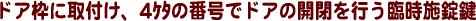 ■ ドア枠に取り付けるだけ ■ 4桁のお好きな番号で管理 ■ 工事・工具不要 ■ ピッキング対策にも効果発揮